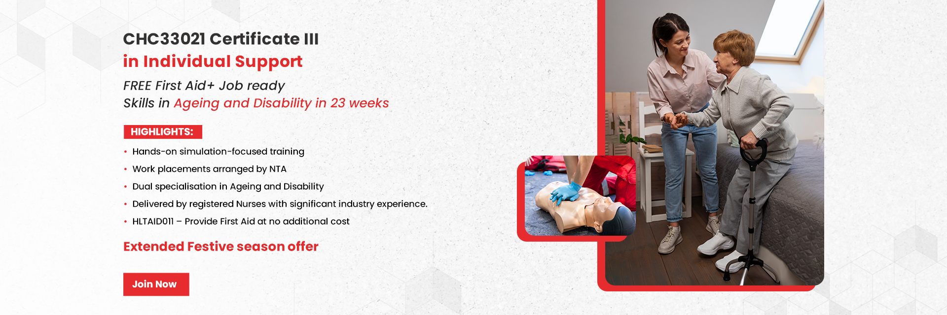 Care Plus Training Pty Ltd trading as Nurse Training Australia (NTA) is a Registered Training Organisation (RTO ID 41009) and a Commonwealth Register of Institutions and Courses for Overseas Students (CRICOS Code 03575C) provider.